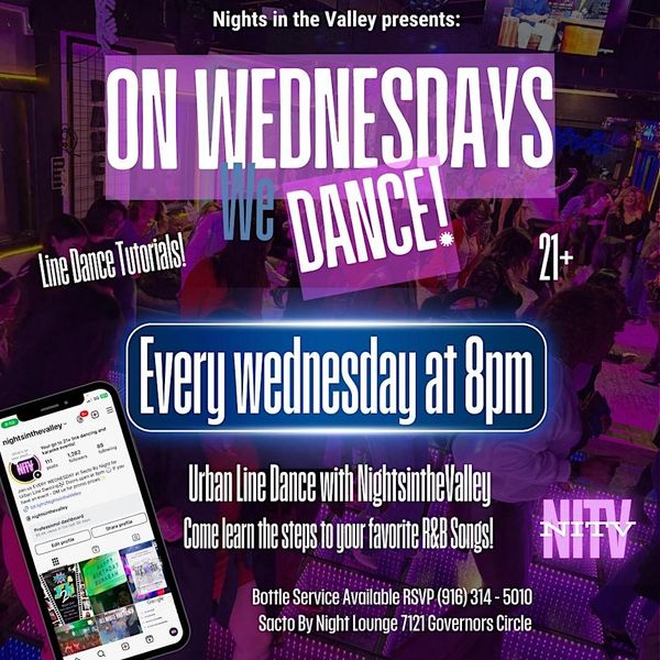 Every Wednesday Nights In The Valley Presents: "Line Dancing Wednesday's at Our Place – Dance, Drink, Dine" at 8PM.